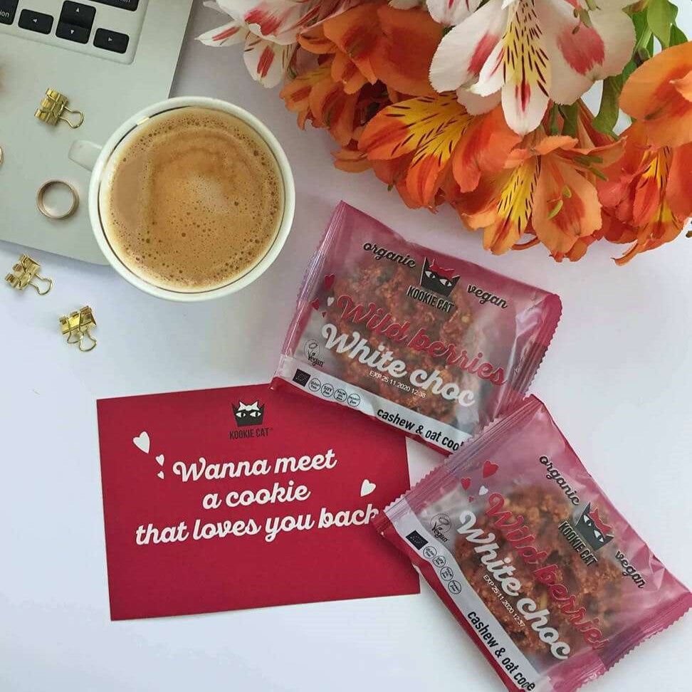 Der Kookie Cat Wildberry-Cookie ist der ideale Begleiter für spontane Naschmomente. Vegan, glutenfrei und ohne raffinierten Zucker - perfekt, für den kleinen Hunger zwischendurch oder um deine Energiereserven wiederaufzuladen!