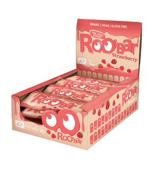 Probiere diesen unwiderstehlichen veganen Riegel mit Erdbeergeschmack, überzogen mit rosa Schokolade. Die perfekte Kombination aus Erdbeerpulver und Cashewkernen, gesüßt mit Reissirup und sanft in eine rosa Hülle gegossen.
