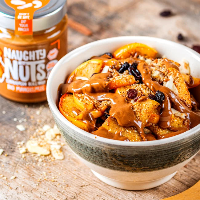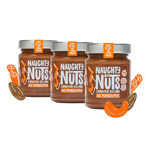 Mandelmus, Cashewmus und Zimt sind eine unschlagbare Kombination. Unsere Sorte Nussmus Cinnamon Roll überrascht Dich mit leichter Süße und einer ordentlichen Portion Zimt. Naughty Tipp: Verzaubere Dein Obst einfach mit einer extra Portion Zimt, indem Du Cinnamon Roll als Dip verwendest - passt auch perfekt als Topping auf Deinem Porridge oder Pancake!